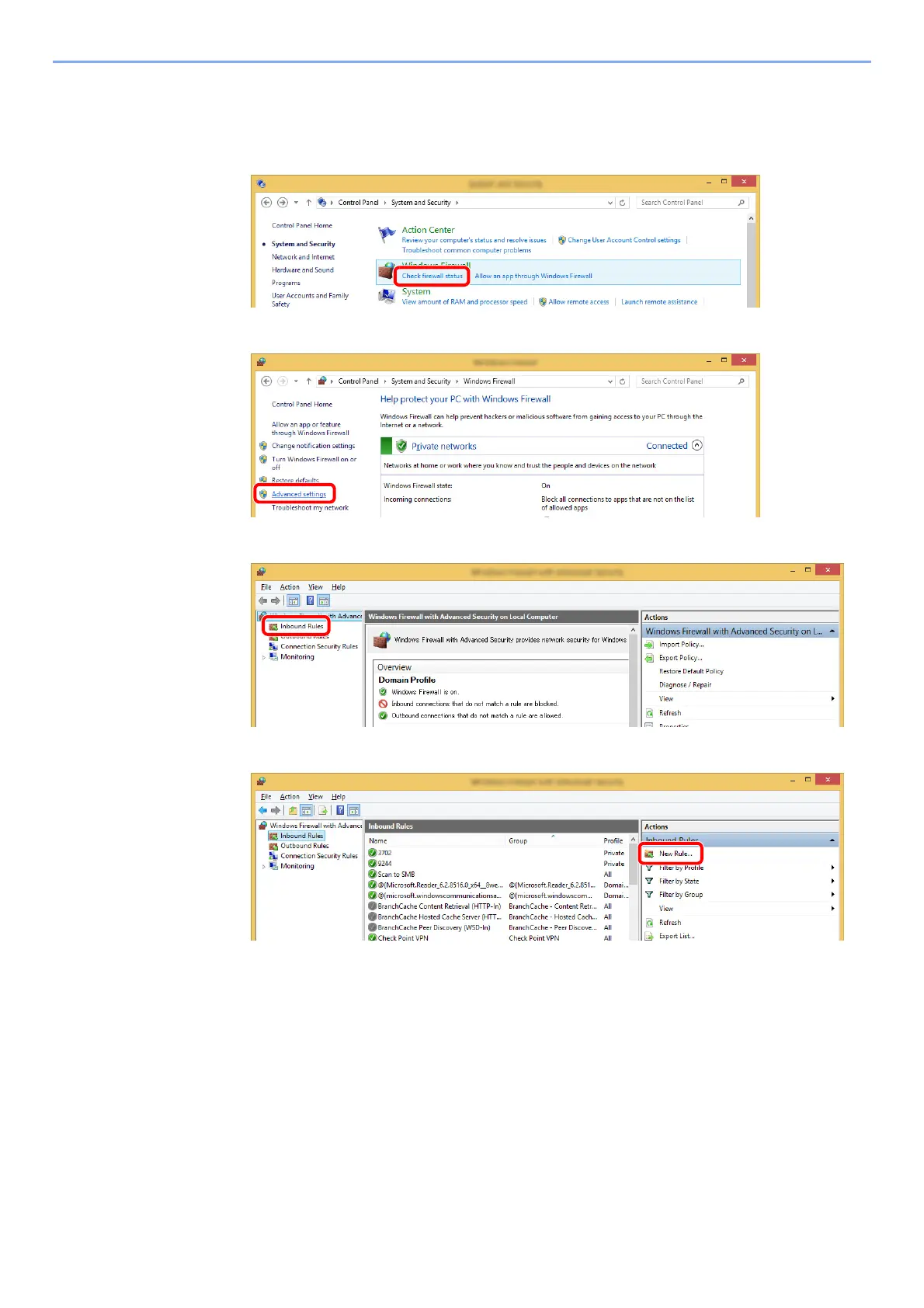 1 In charms on Desktop, click [Settings], [Control Panel], [System and Security], and