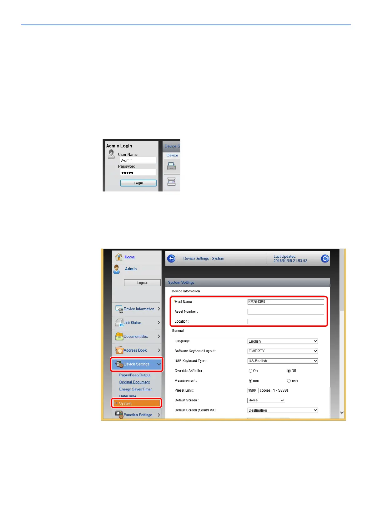 The factory default setting for the default user with administrator privileges is shown below. (Upper