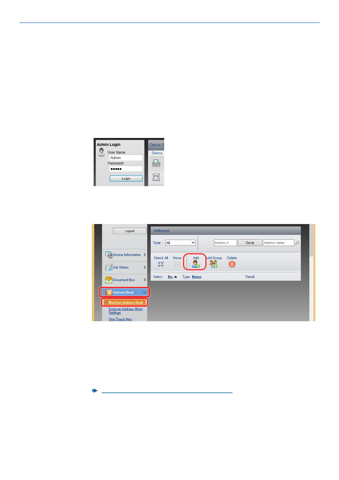 The factory default setting for the default user with administrator privileges is shown below. (Upper