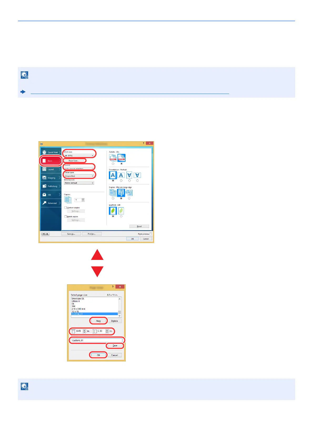 at is not included in the print sizes of the machine, register the paper size in the [Basic]