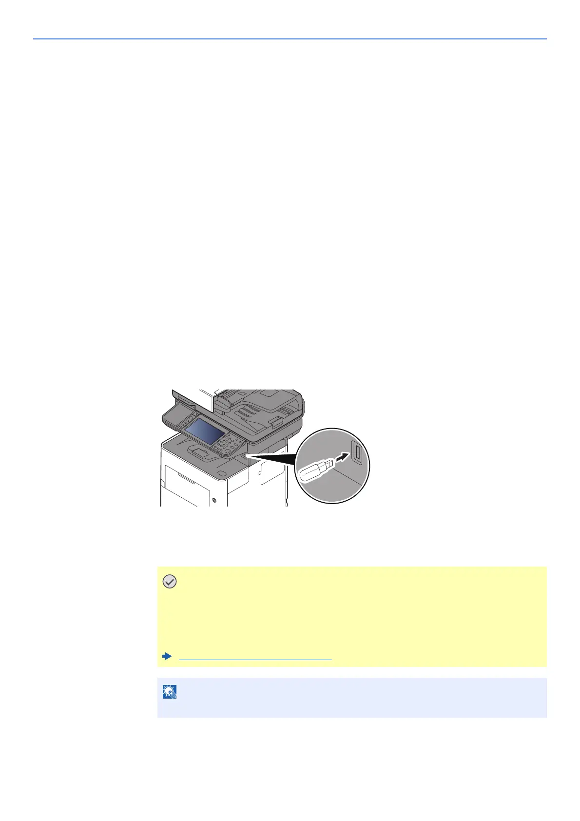Plugging USB memory directly into the machine enables you to quickly and easily print the files stored in the USB