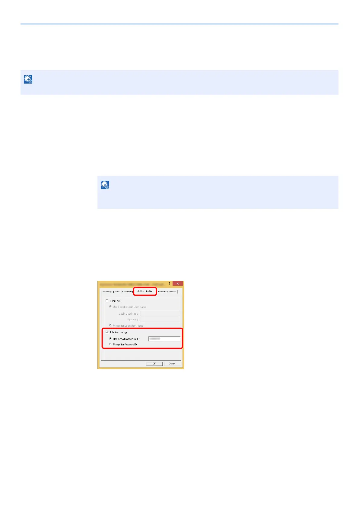 Account ID for every FAX job. If this option is selected, the user does not have to enter the Account ID