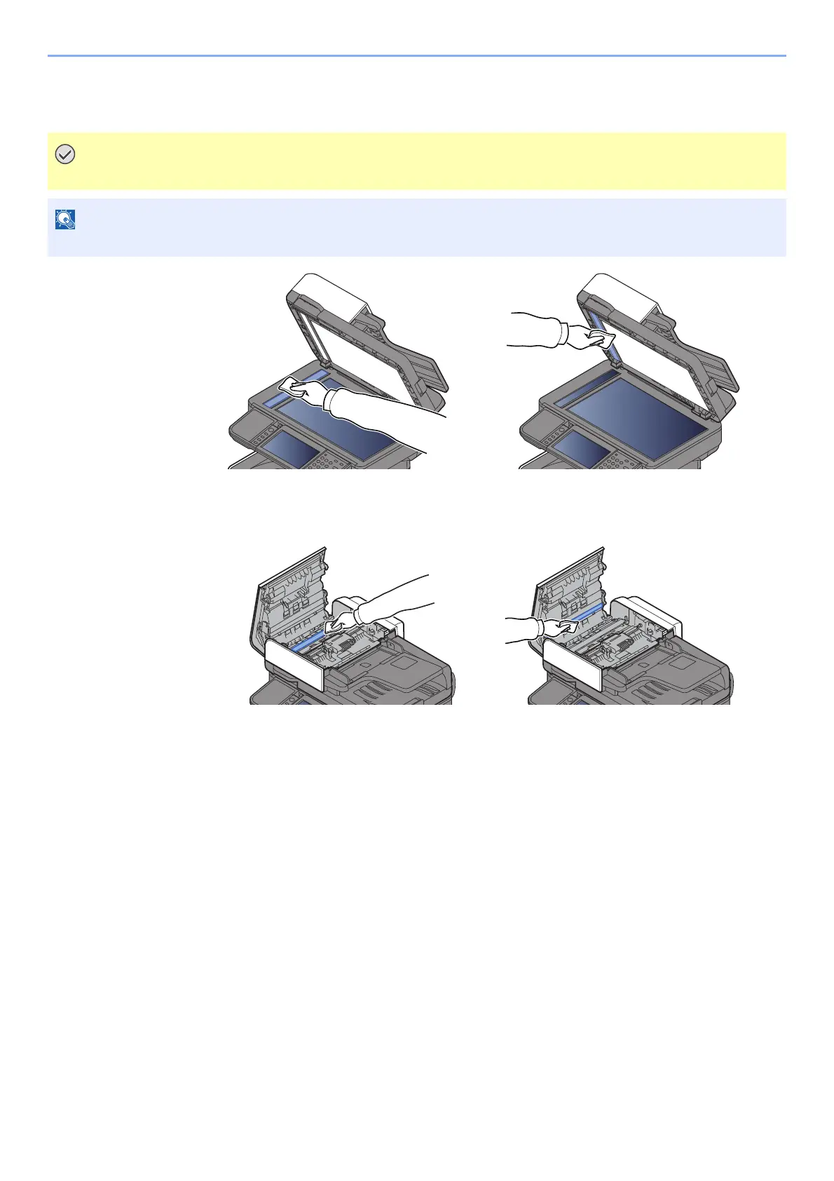 When using the document processor, clean the slit glass surface and the reading guide with the dry cloth.