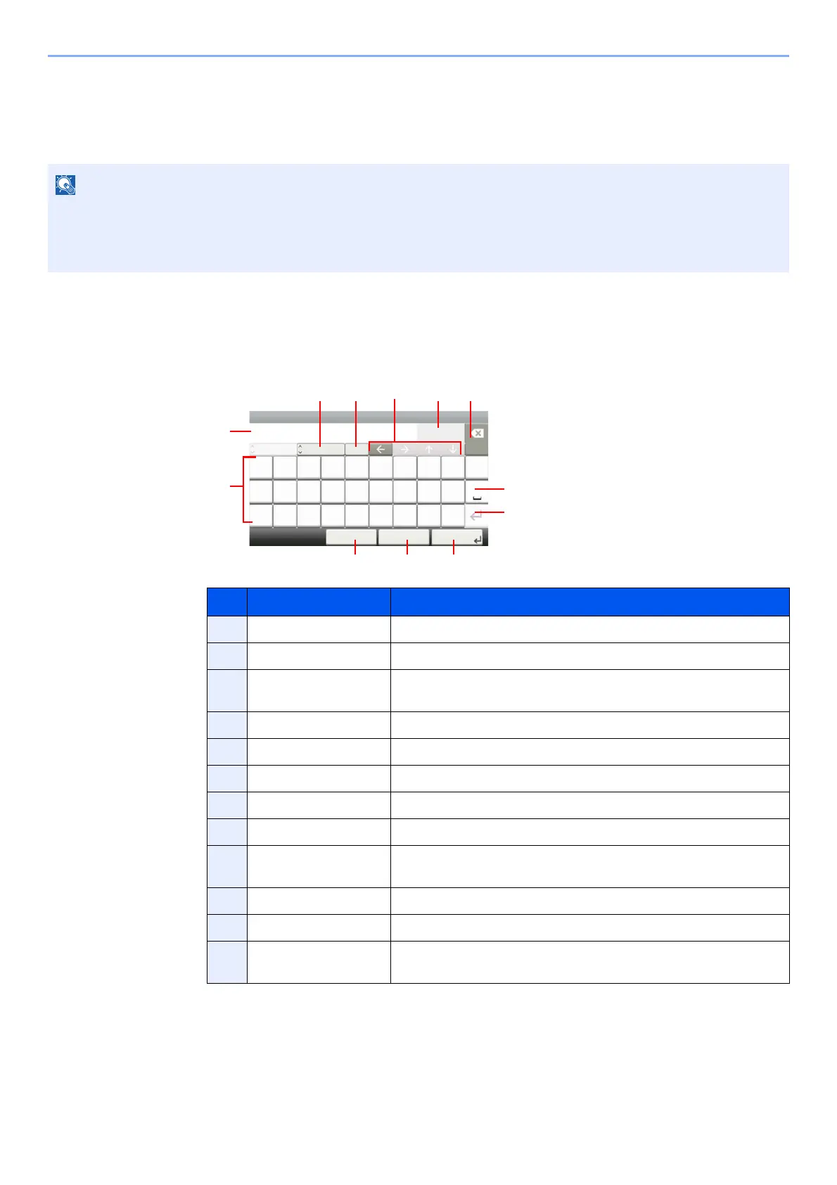 To enter characters for a name, use the on-display keyboard in the touch panel following the steps as explained below.