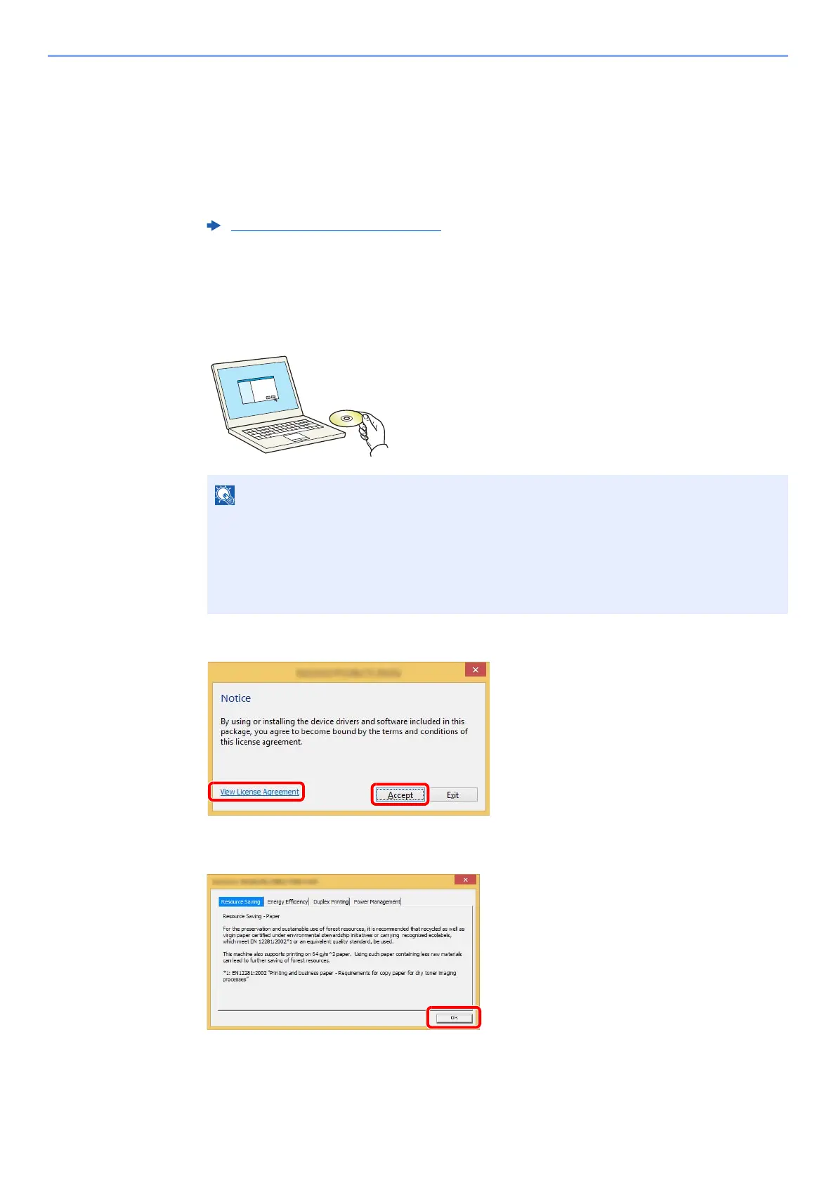 After clicking [Accept] in the license dialog box, depending on your region, a message about