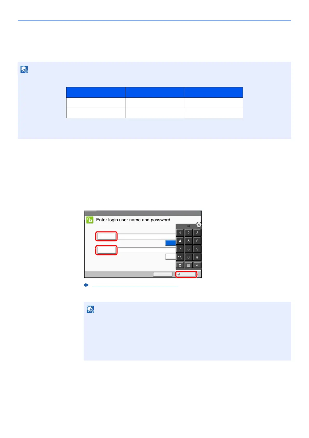 1 If this screen is displayed during operations, select [Login User Name] to enter the login