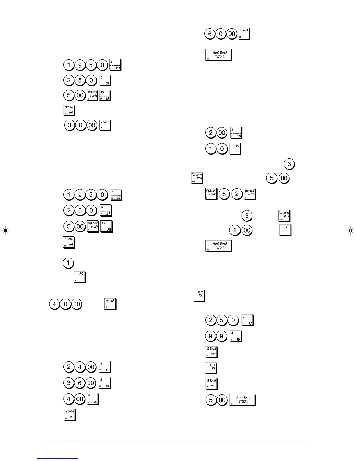 Example: Register a £19.50 item to Department 4, a £2.50