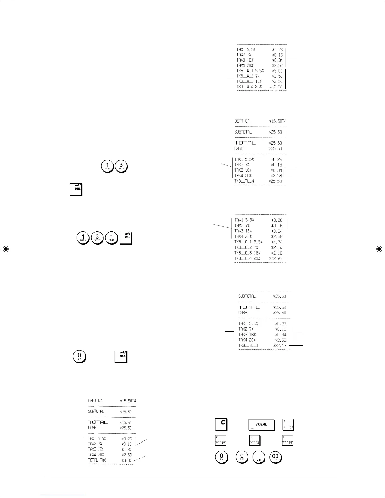 Receipt with Taxable Sales Totals without VAT per