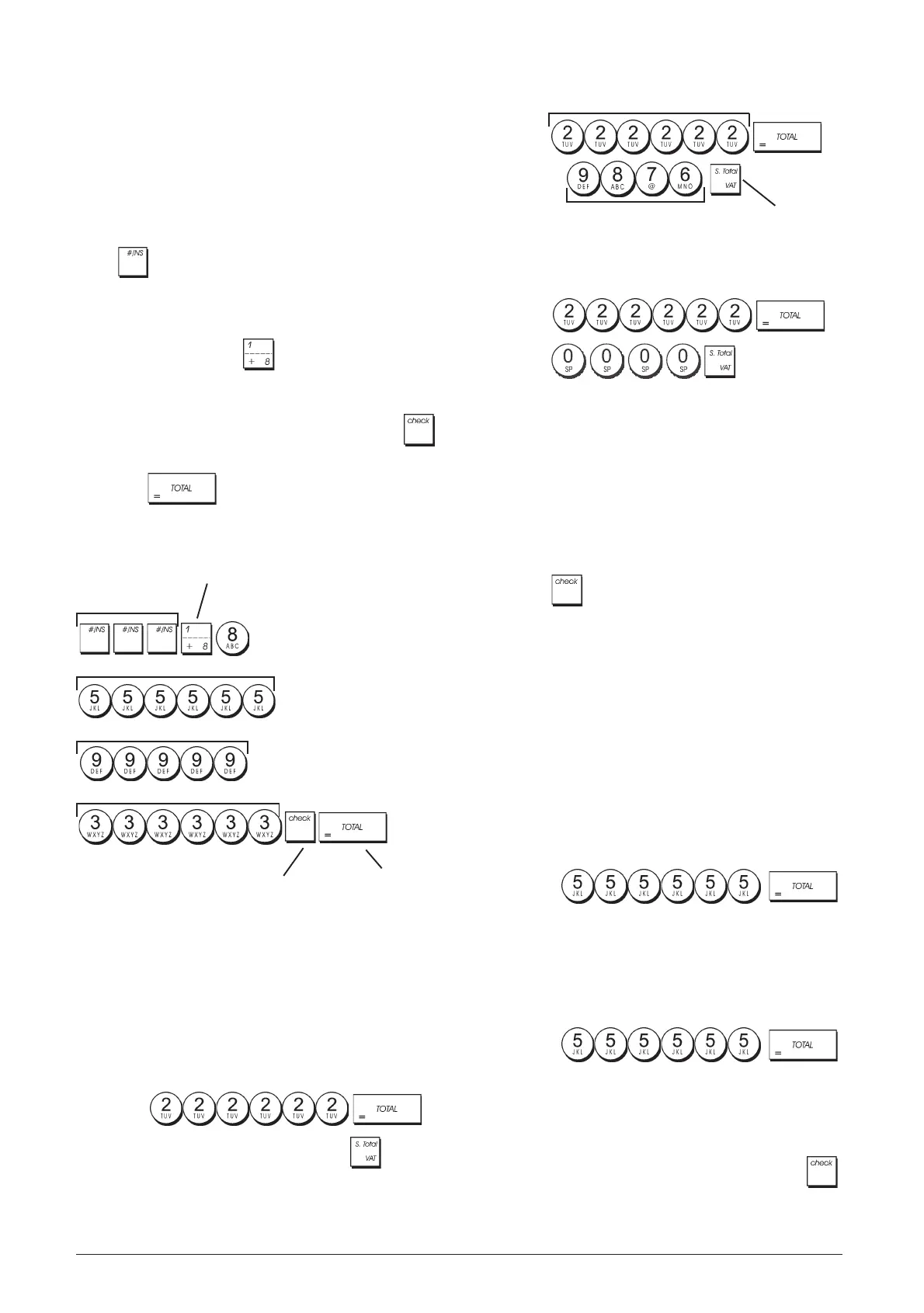 Når kasseapparatet er sat i oplæringsmåden, udføres alle