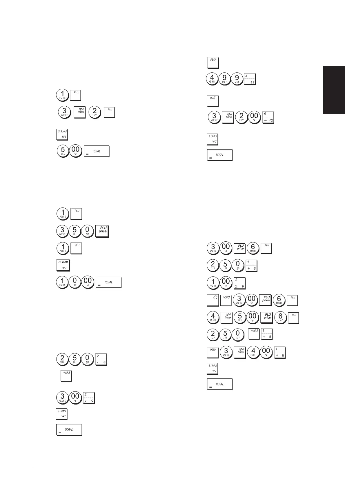 transaction: register PLU 1 and multiply 3 PLU 2. Com-