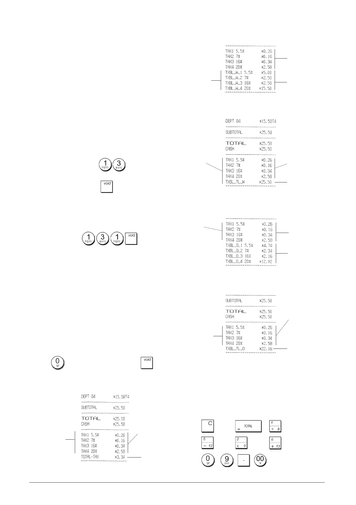 Ticket avec somme des totaux de vente taxables sans