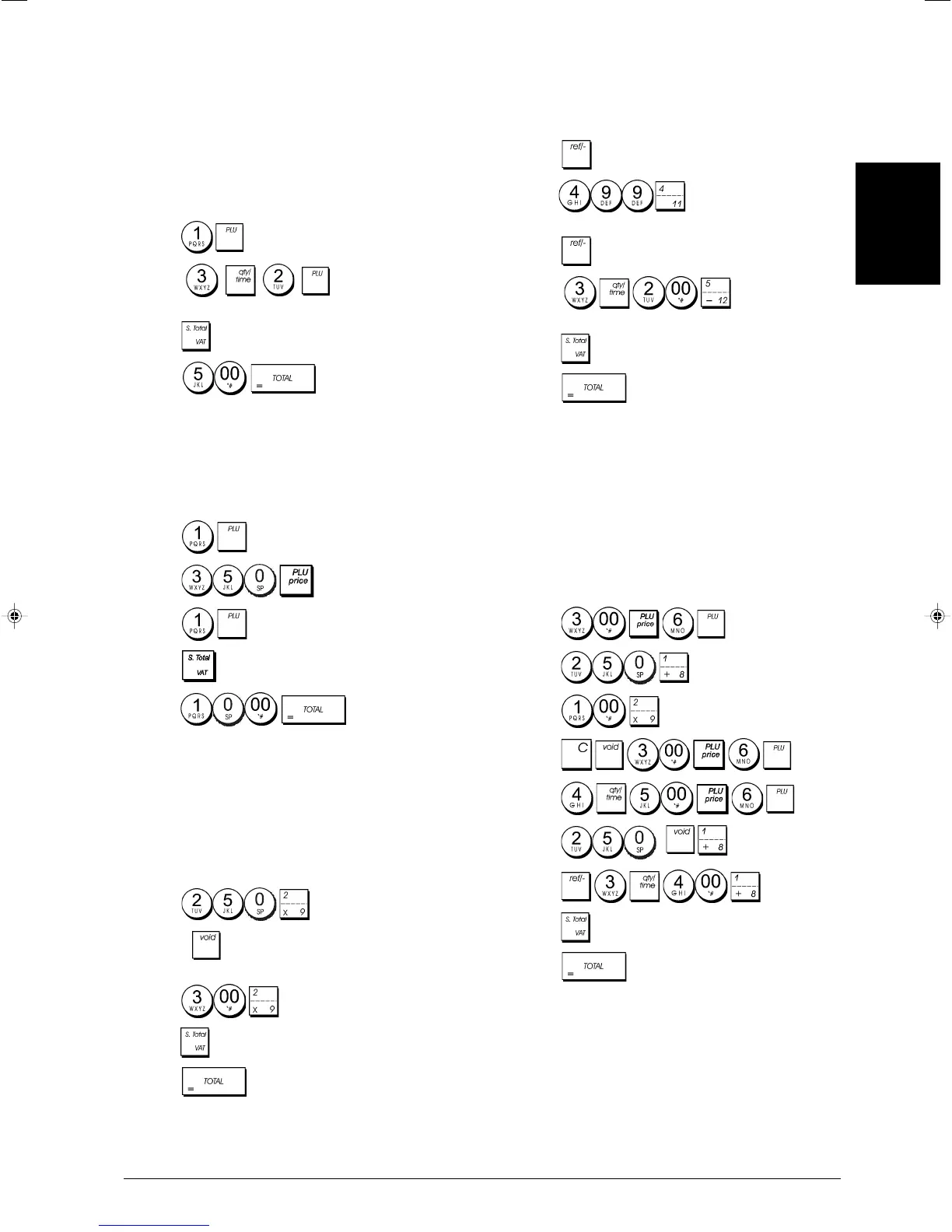 transaction: register PLU 1 and multiply 3 PLU 2. Com-