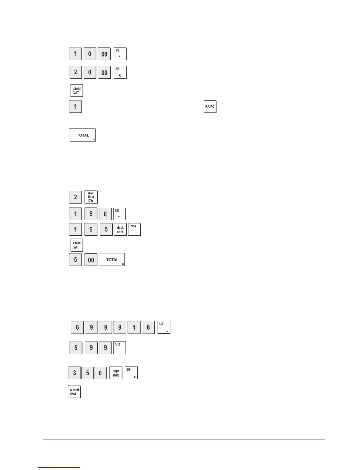 Example: Register a €69.99 item to Department 1, a €5.99 item to Department 4 and a €3.50 item to Department 9.