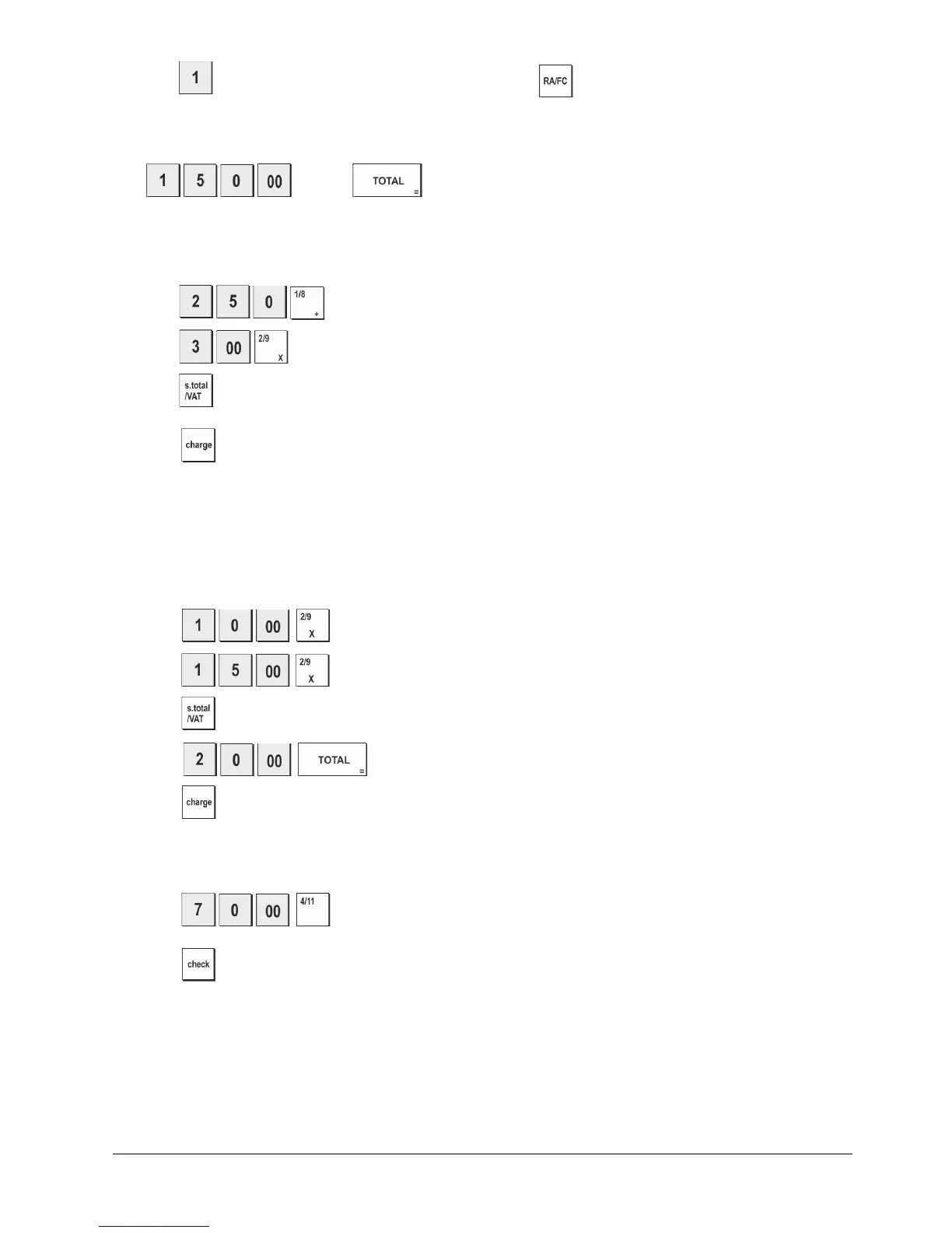 Example: Register a €2.50 item to Department 1 and a €3.00 item to Department 2 as a charge transaction.