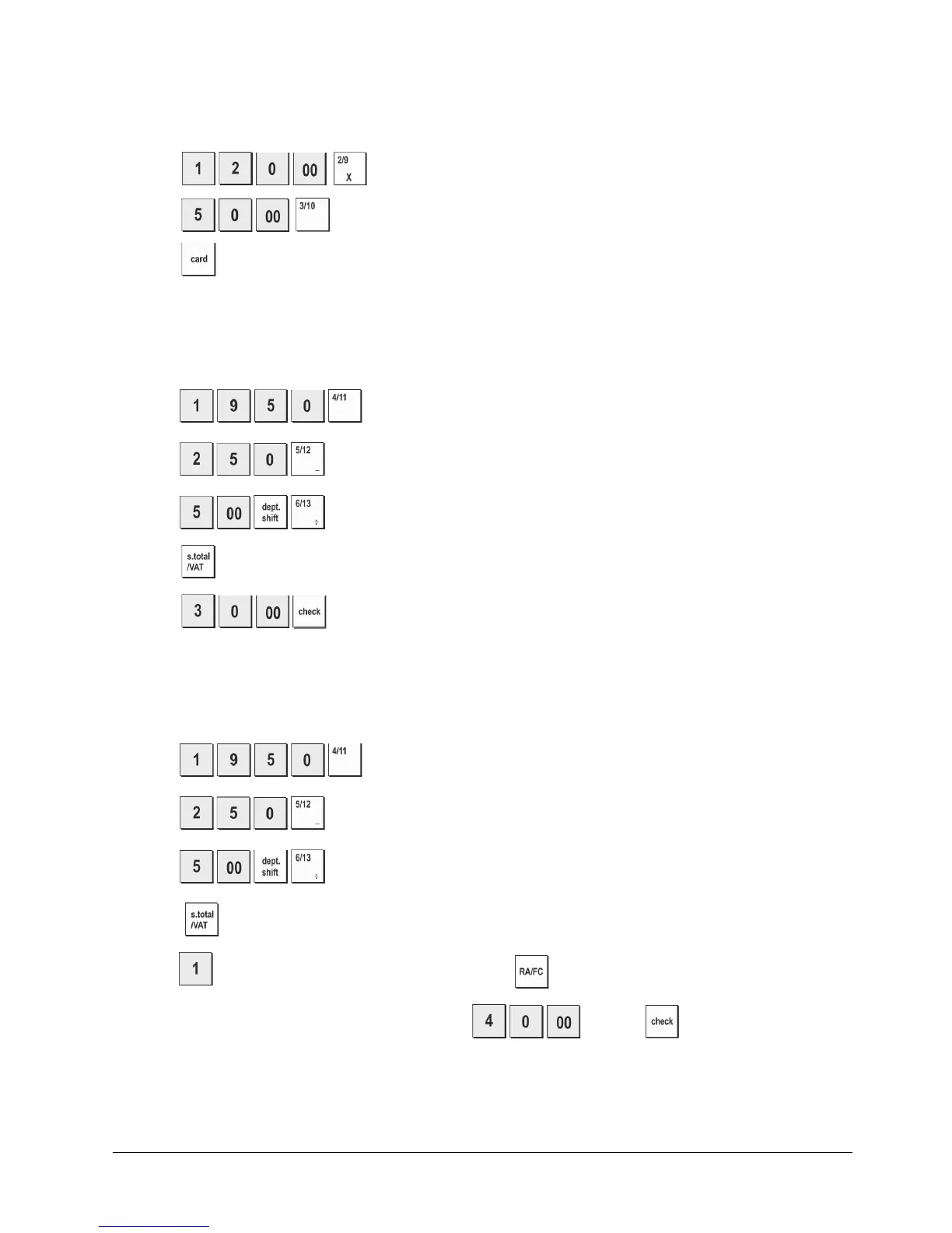 Example: Register a €19.50 item to Department 4, a €2.50 item to Department 5 and a €5.00 item to Department 13.