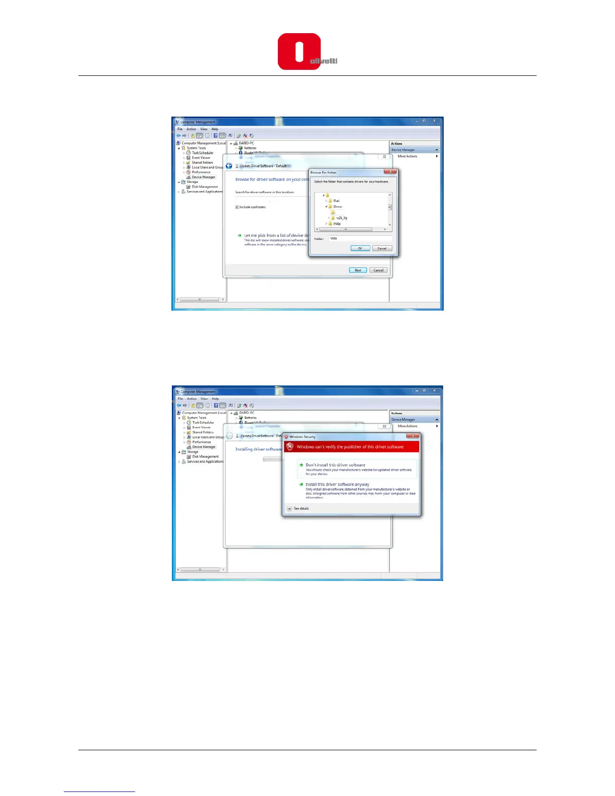 C:\OLIVETTI_ECR_Utility_82xx\Driver\Vista (32 bit) or Vista_7_X64 (64 bit), and select the folder.