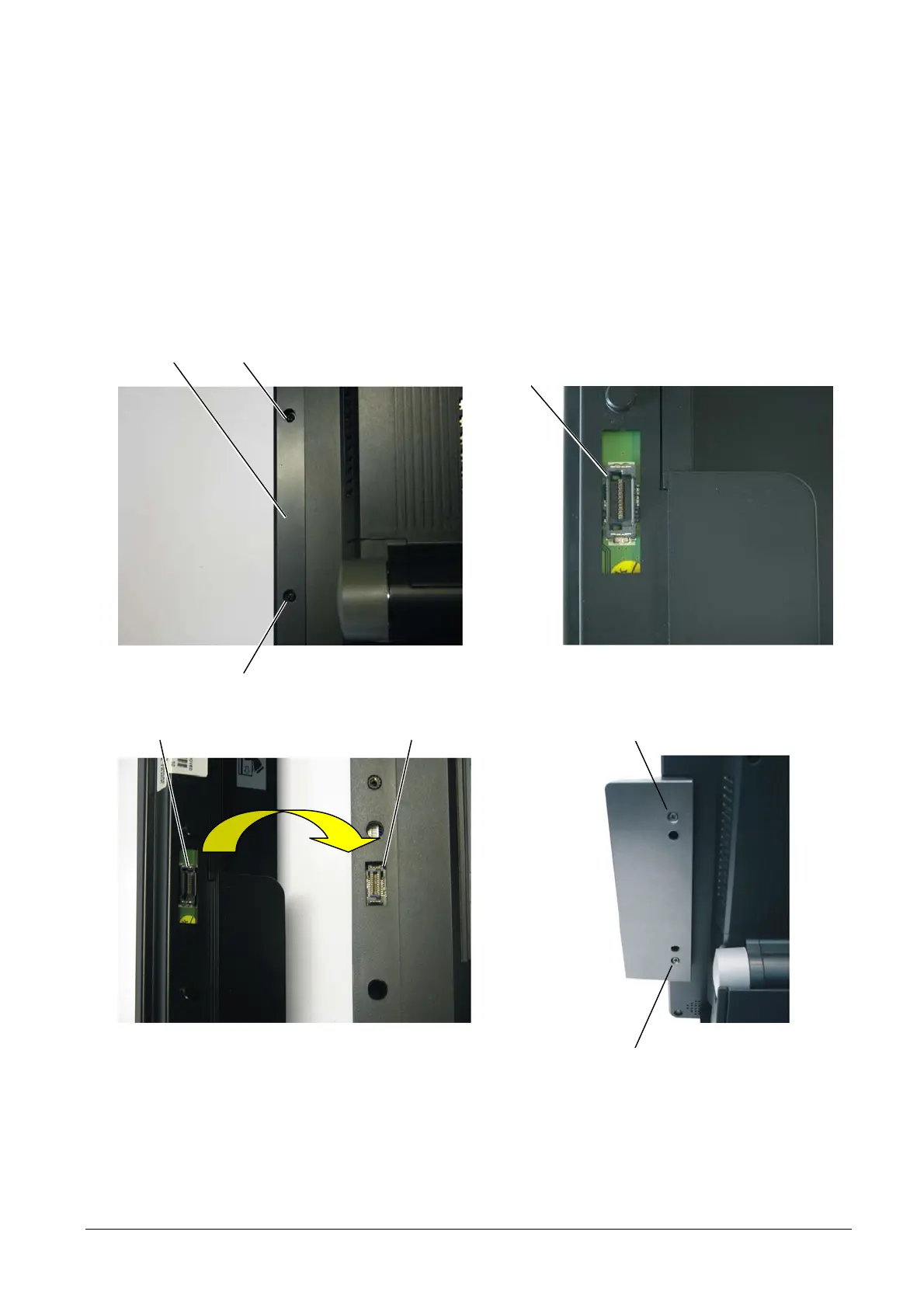 • Fasten the badge reader to the base module using screws E.