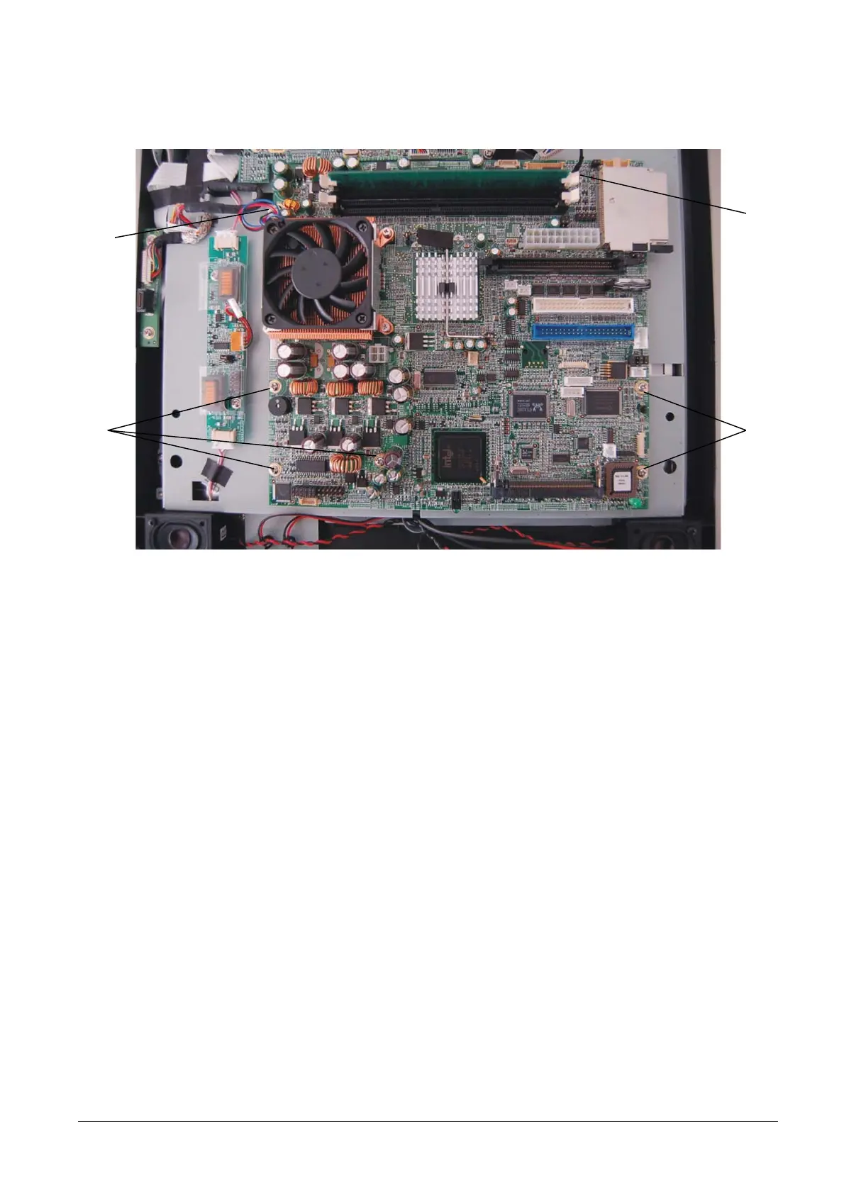 Loosen screws D and remove the motherboard.