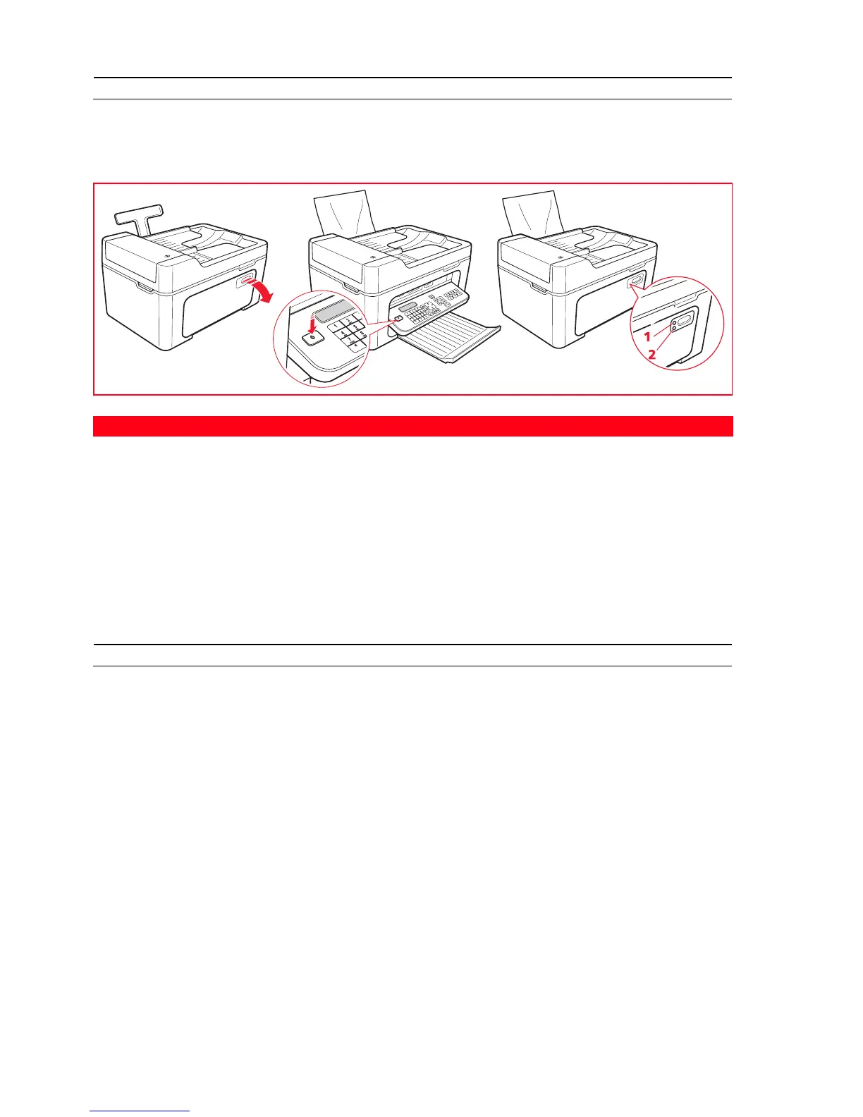 When the keyboard is closed, the two LEDs indicate if the printer is switched on and if any operating errors have
