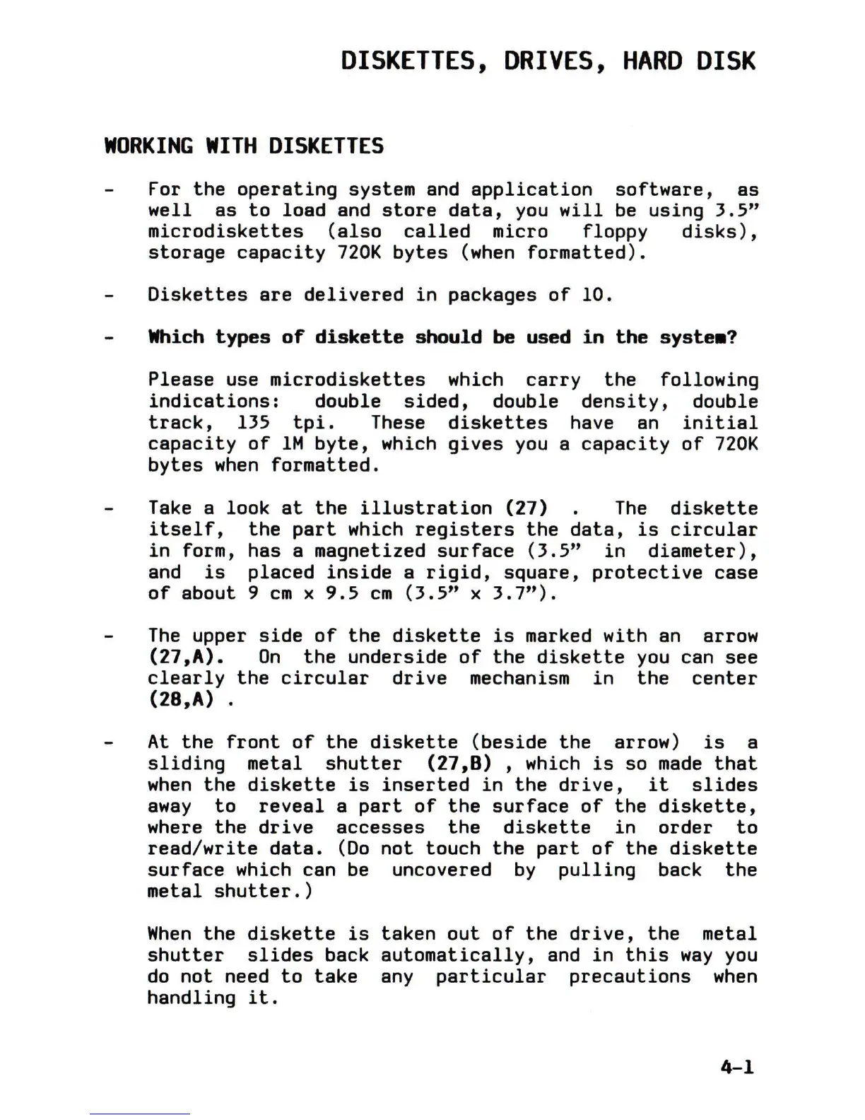 Olivetti M15 Plus - Diskettes, Drives, Hard Disk; Working with Diskettes