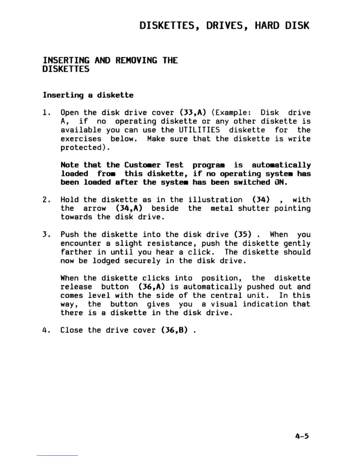 Olivetti M15 Plus - Inserting and Removing the Diskettes; Inserting a Diskette