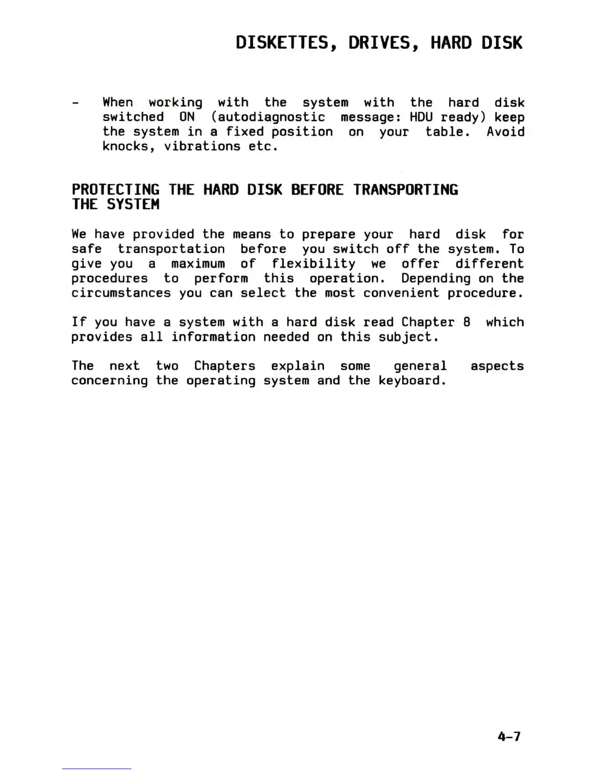 Olivetti M15 Plus - PROTECTING the HARD DISK before TRANSPORTING the SYSTEM
