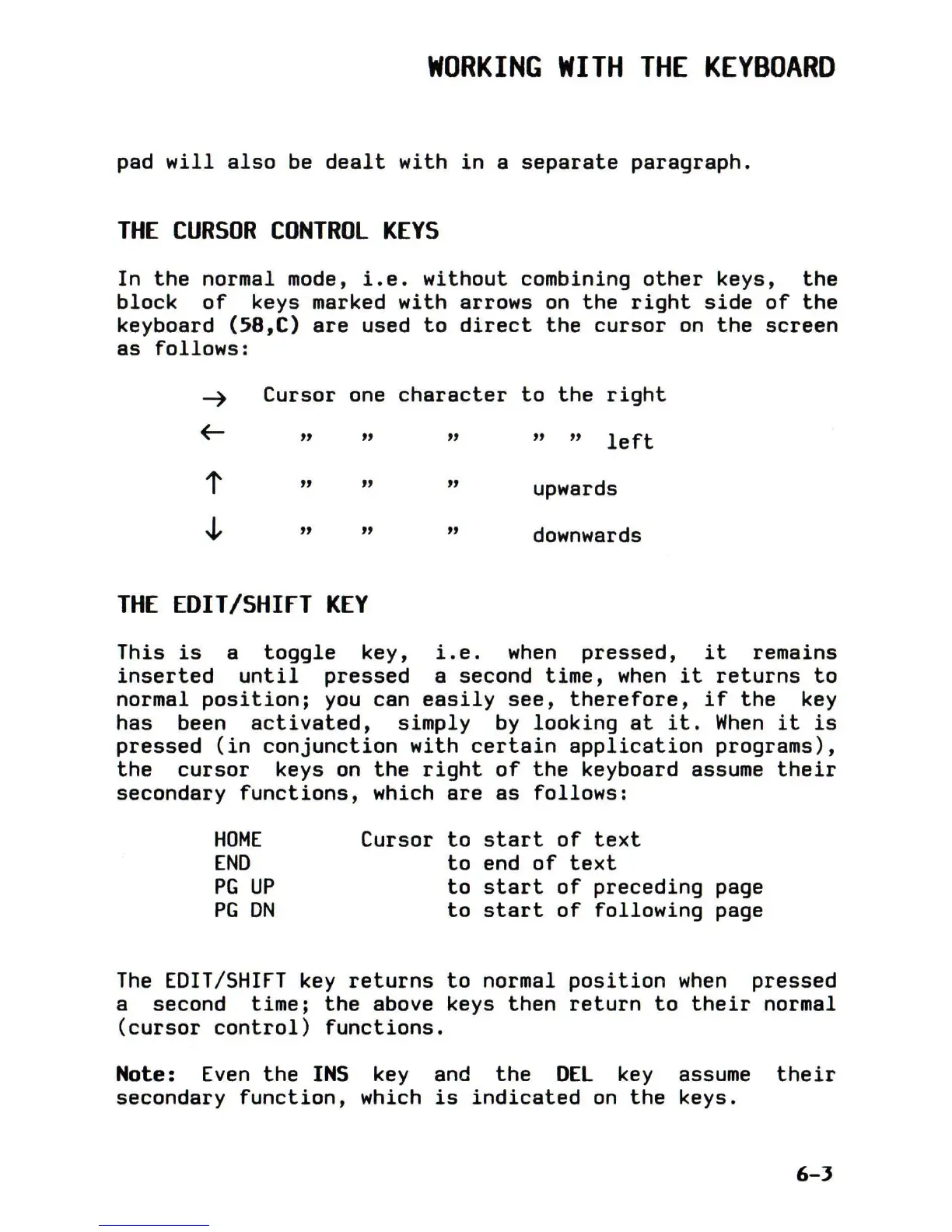 Olivetti M15 Plus - The Cursor Control Keys; THE Edit;Shift KEY