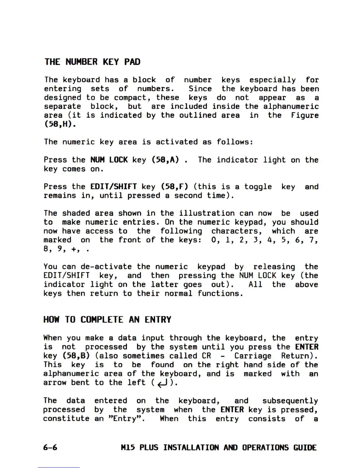Olivetti M15 Plus - The Number Key Pad; How to Complete an Entry