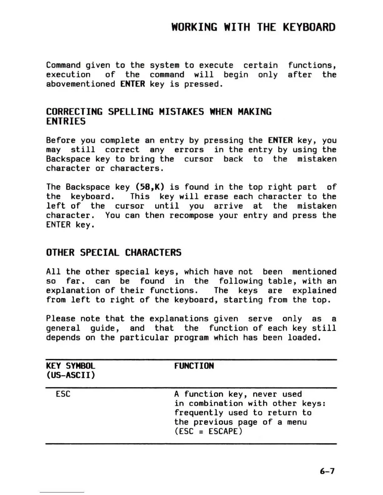 Backspace key (58,K)