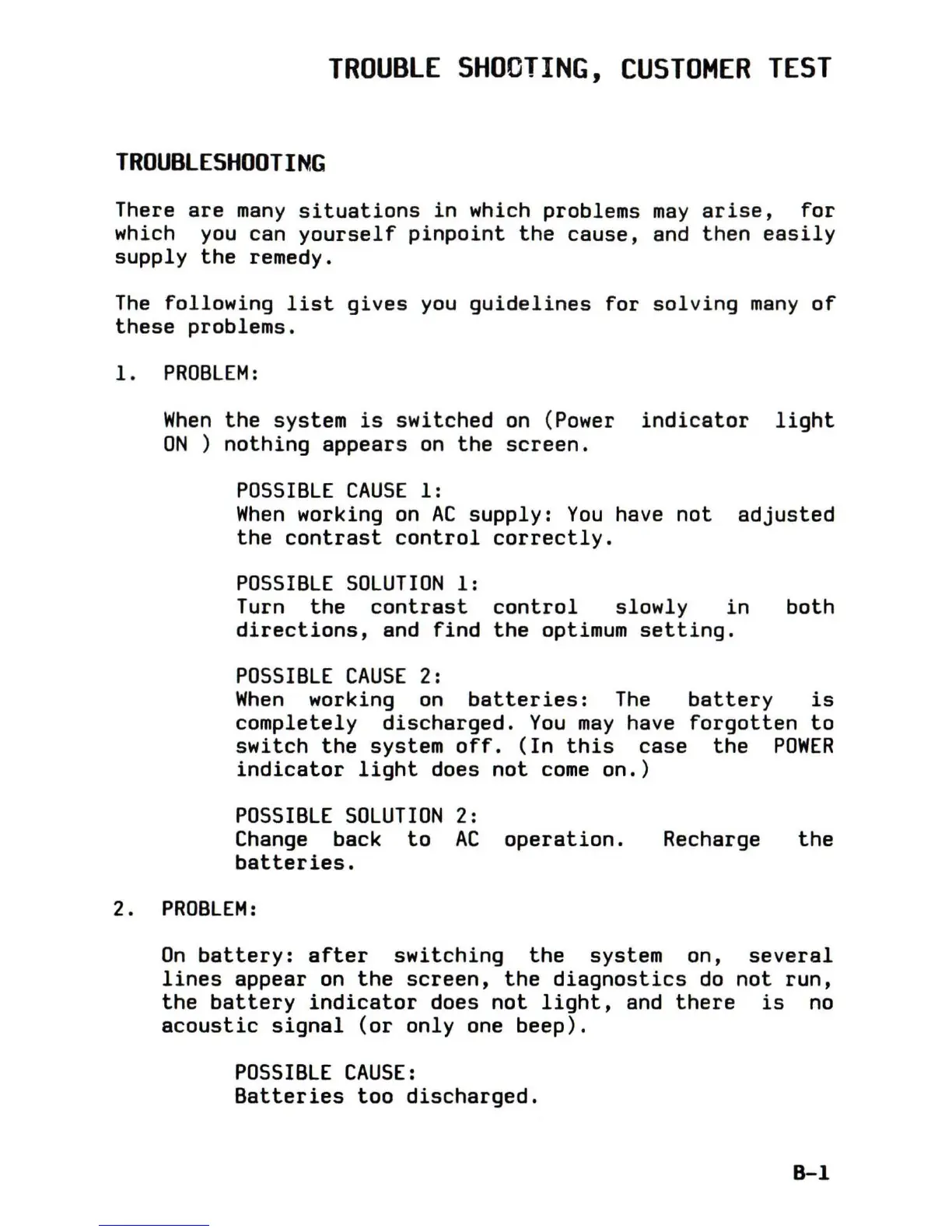 Olivetti M15 Plus - Trouble SHOOTING, CUSTOMER TEST; Troubleshooting