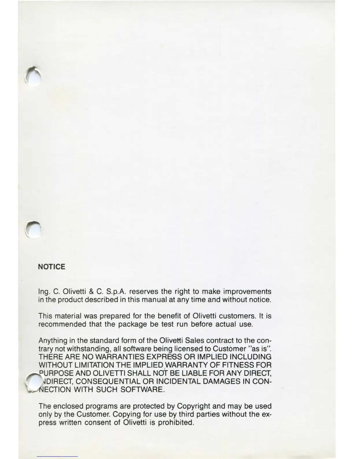 URPOSE AND OLIVETTI SHALL NOT BE LIABLE FOR