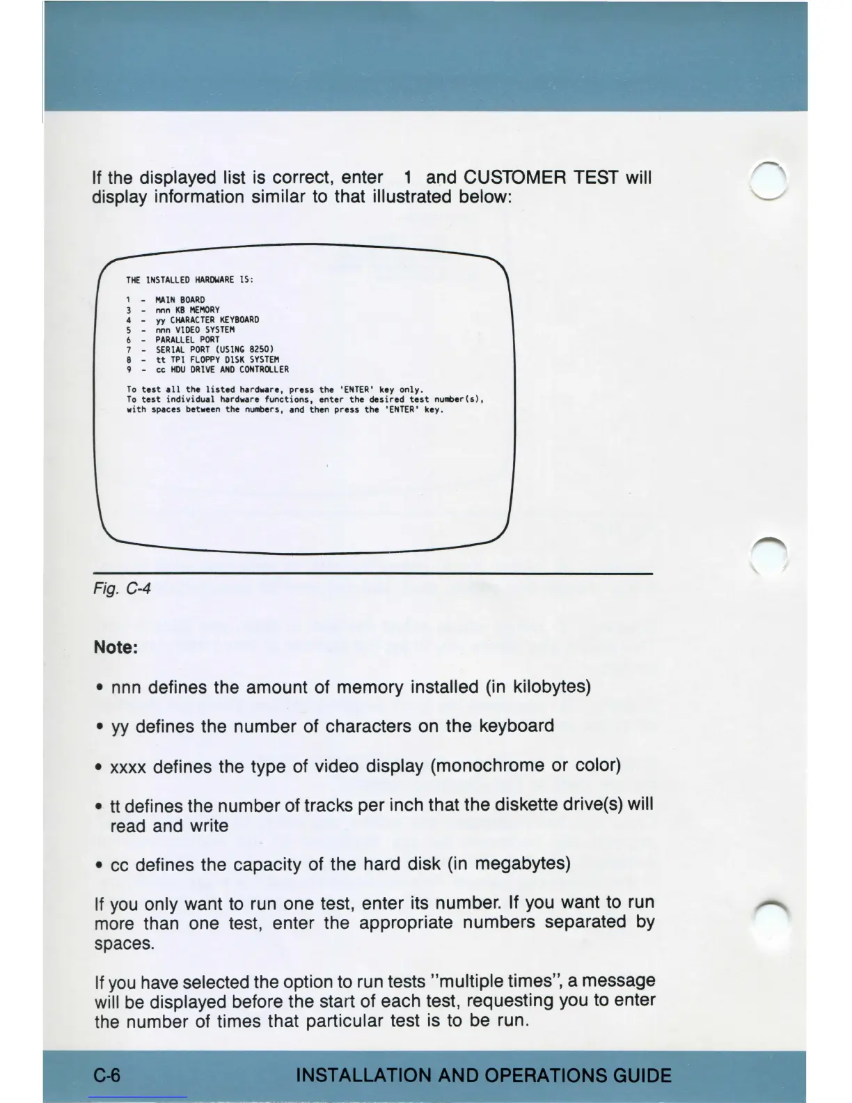 displayed list is correct, enter 1 and CUSTOMER TEST will