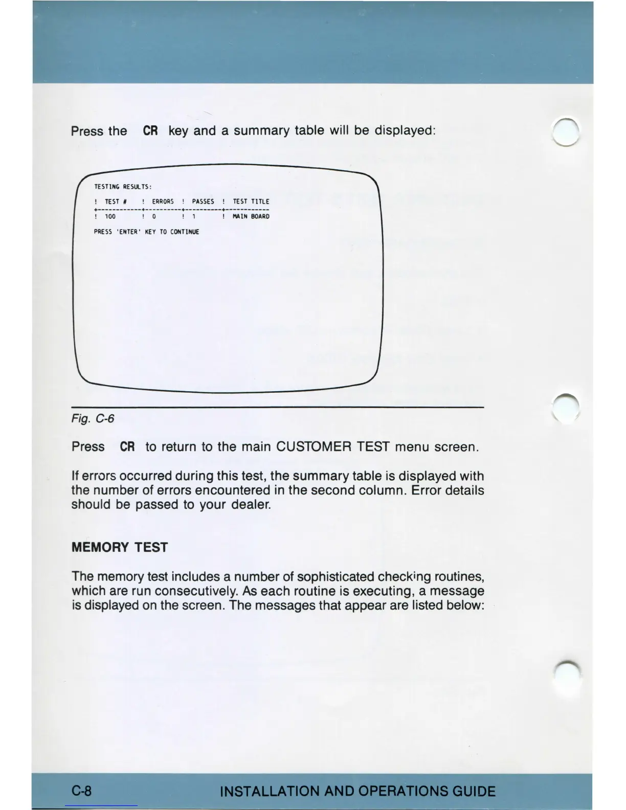 to return to the main CUSTOMER TEST menu screen.