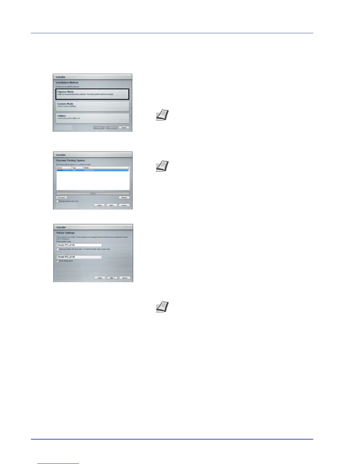 In Express Mode, the installer automatically detects the printer when