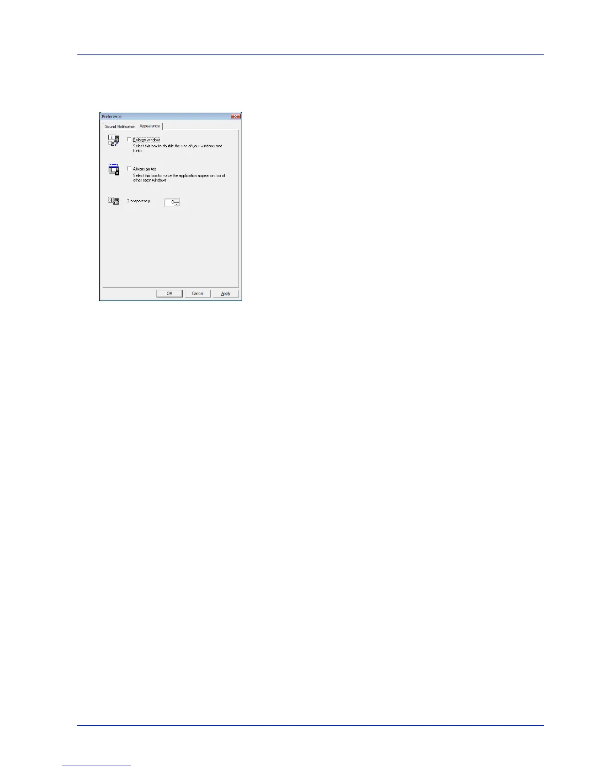 The Appearance tab is contains the following items.