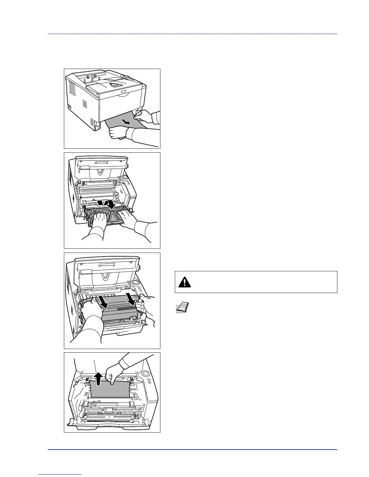 4 If the jammed paper appears to be pinched by rollers, pull it along