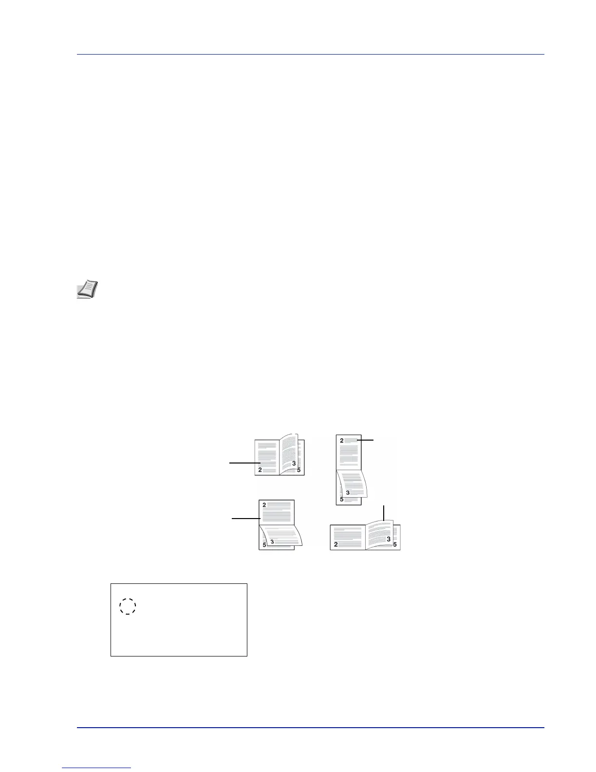 Depending on the binding type and print orientation, the duplexer provides four types of binding. These are: (1) portrait, Bind