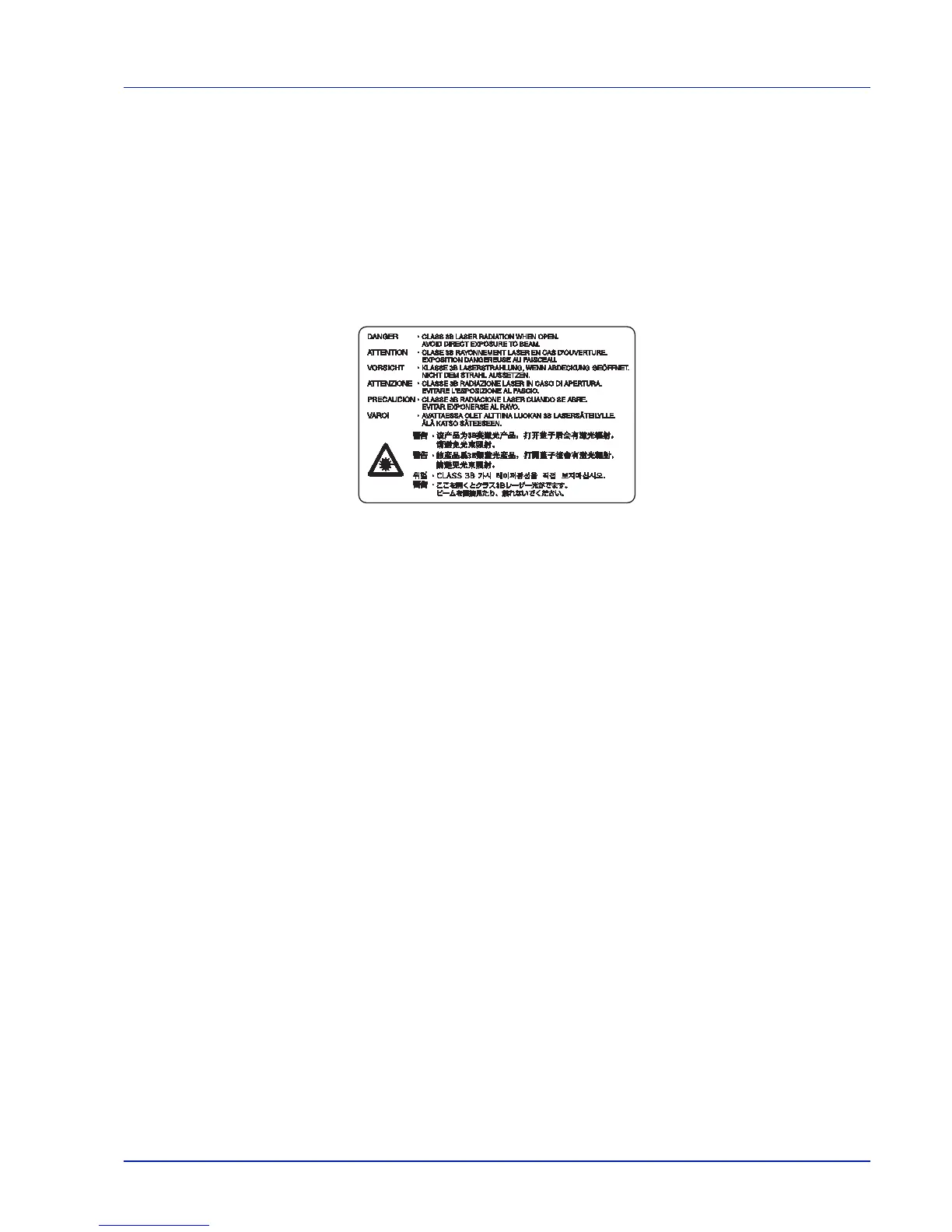This label is attached to the laser scanner unit inside the machine and is not in a user access area.