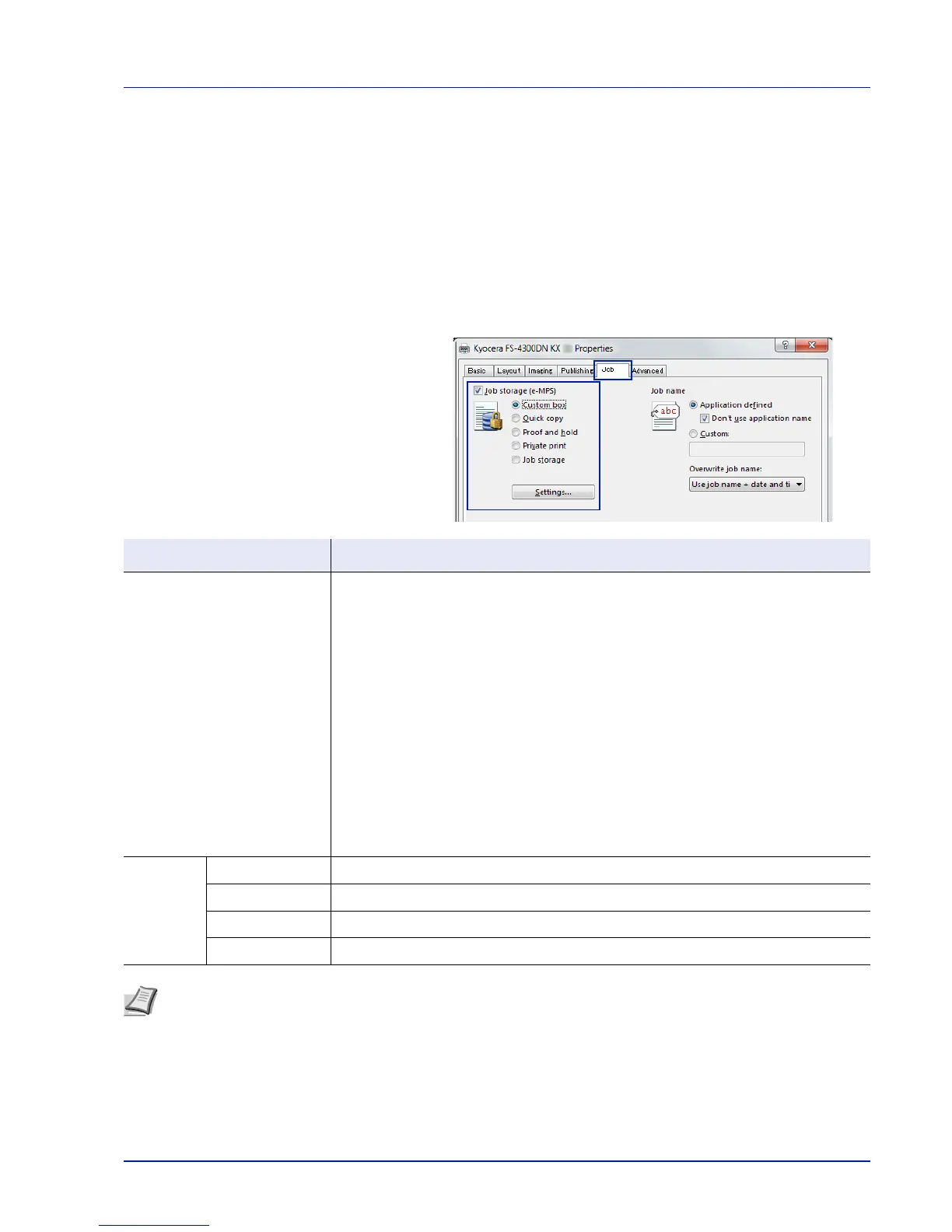 4 Click the Job tab and select the Job storage (e-MPS) check box to