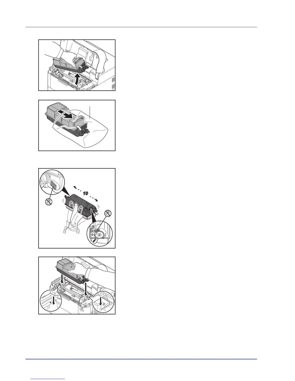 6 Shake the new toner container at least 10 times as shown in the