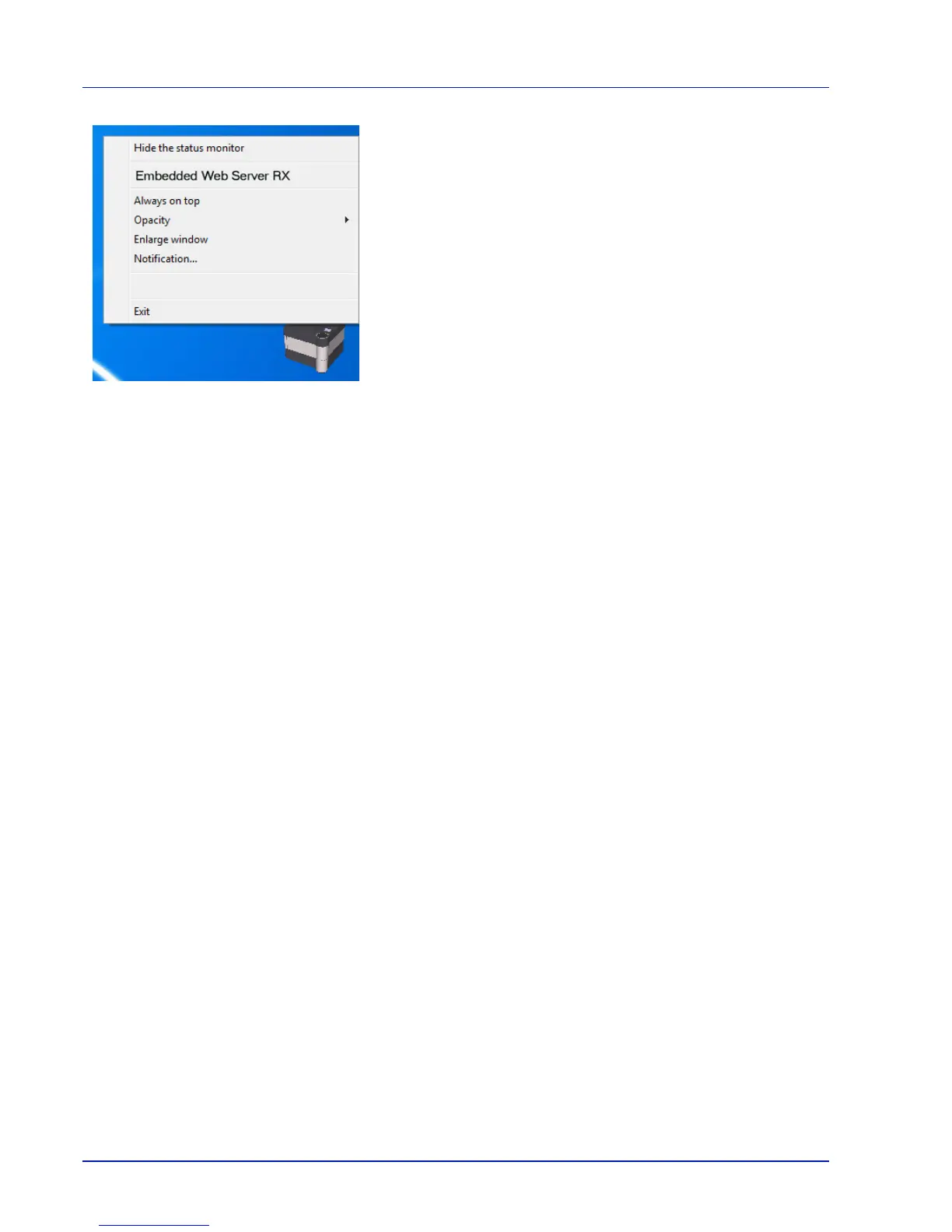 name appears. Right-clicking the Status Monitor icon allows you to set