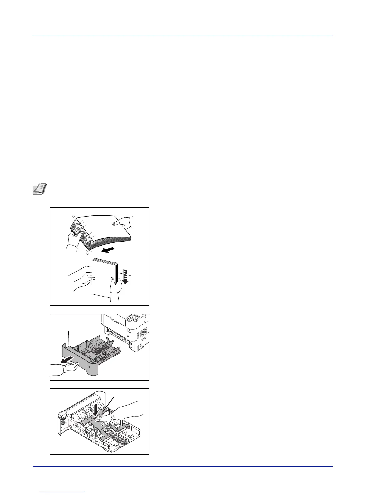 The following explains the procedure for loading paper in the cassette and the MP tray.