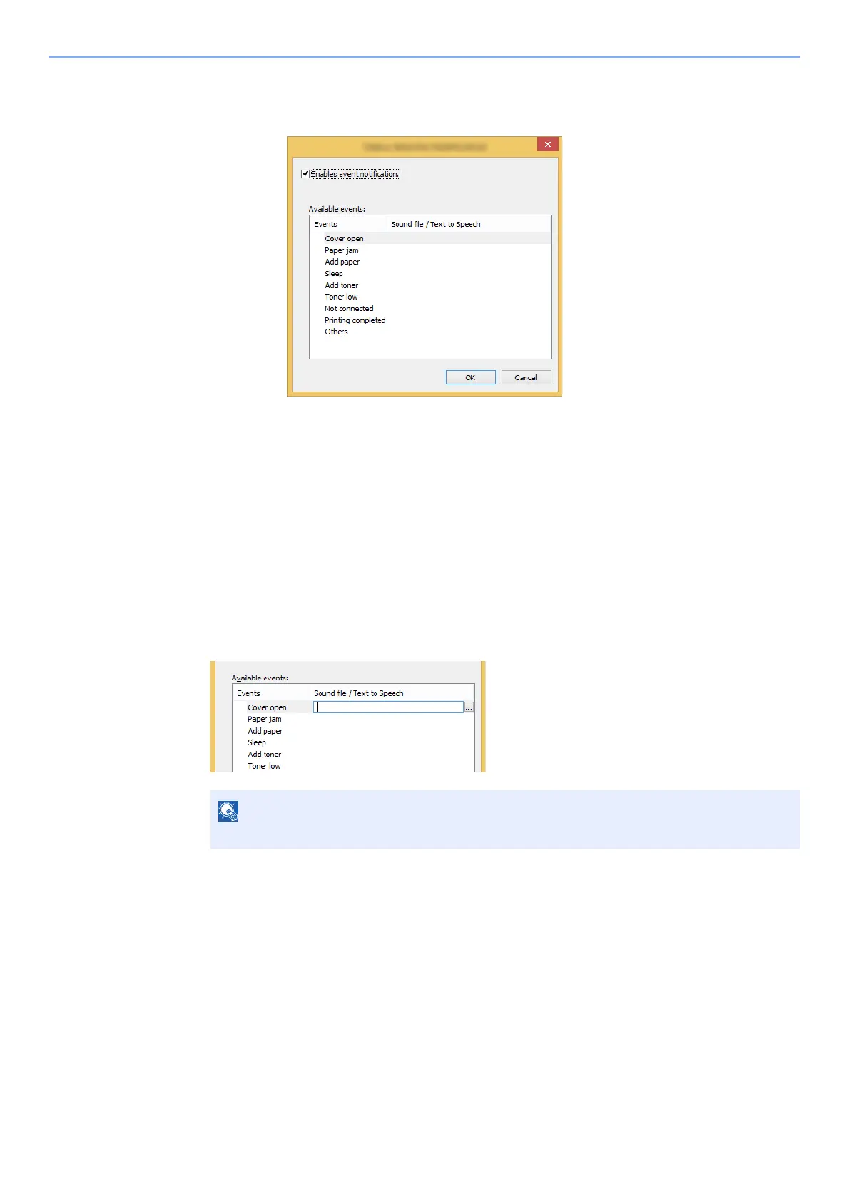 Click the setting icon to display valid events in the status monitor notification screen.