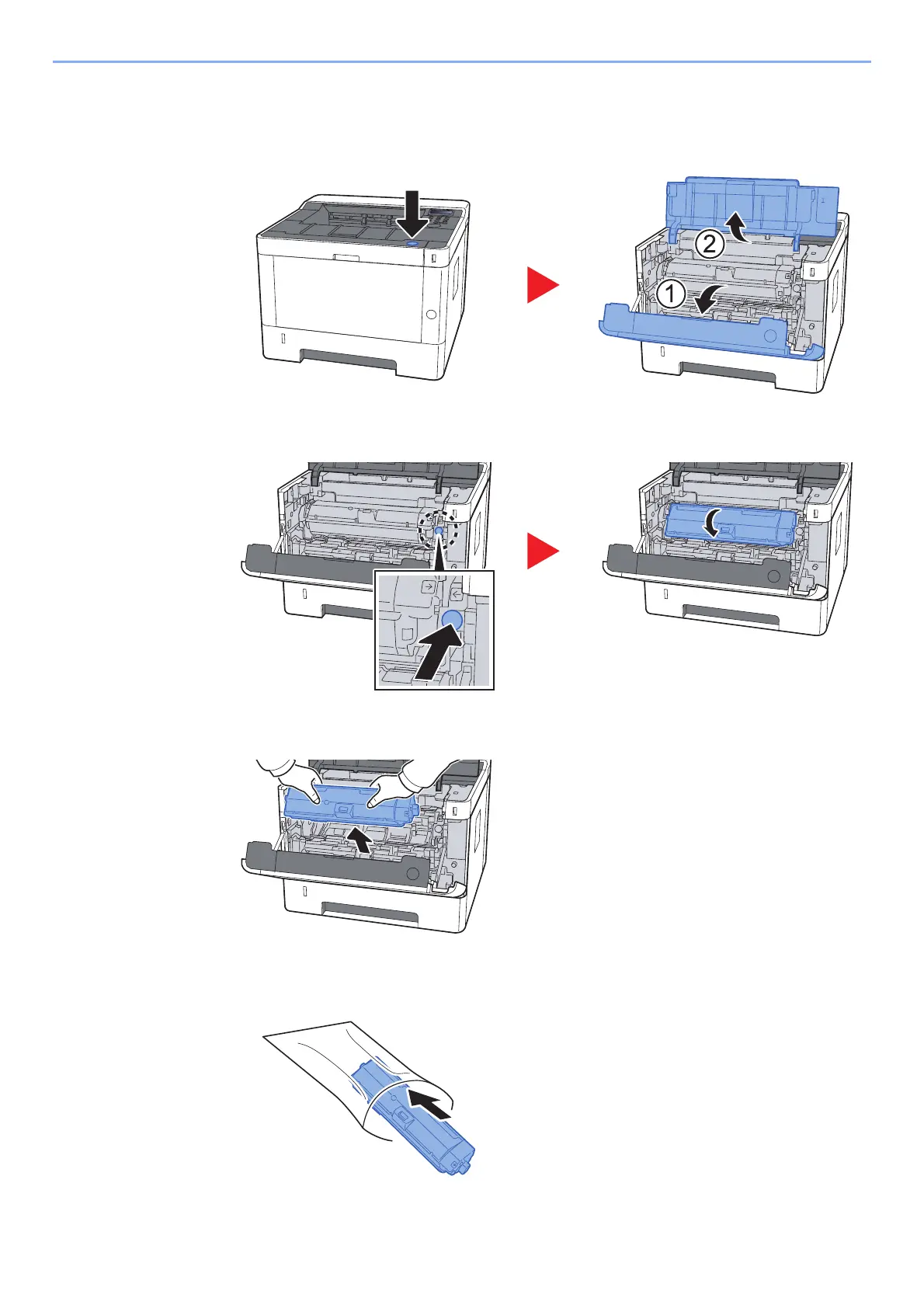 Put used toner containers into the plastic waste bag.