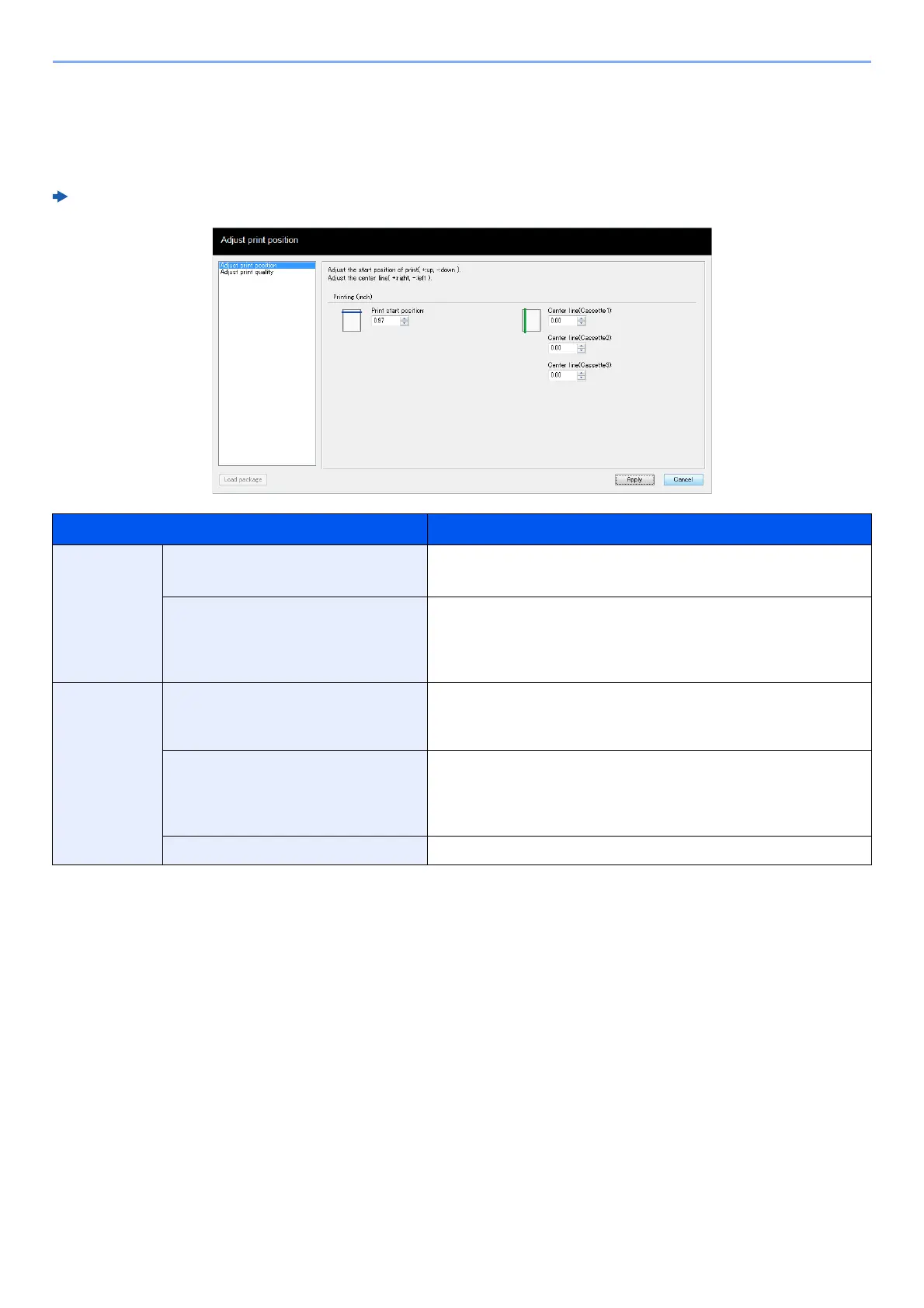 Printing start position Enter or select the top margin start position for printing.