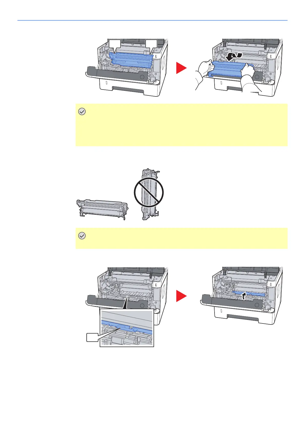 • Do not touch the drum or subject the drum to shock. Print quality will be degraded
