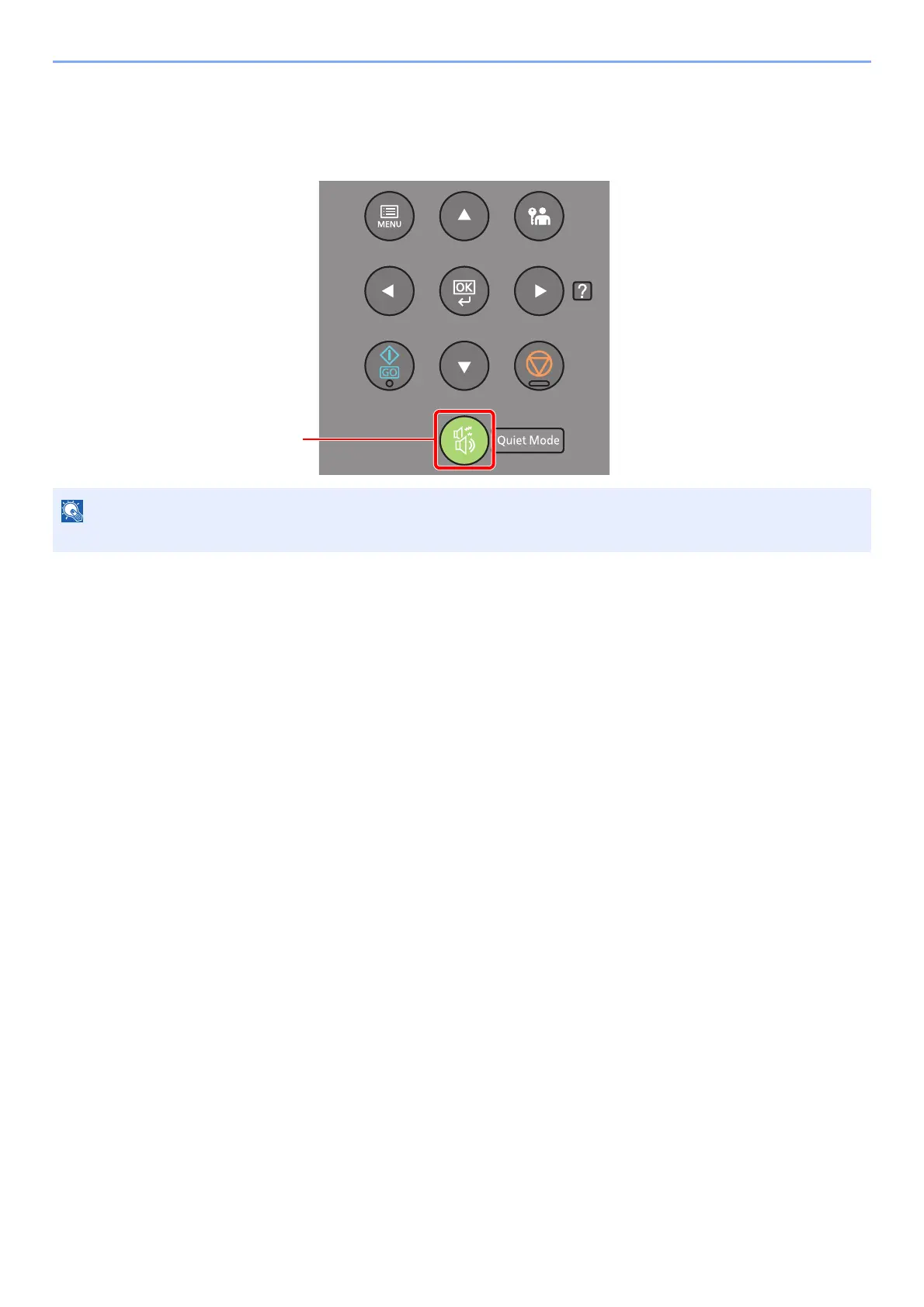 When the [Quiet Mode] key is selected, the [Quiet Mode] key blinks and Quiet Mode is enabled.