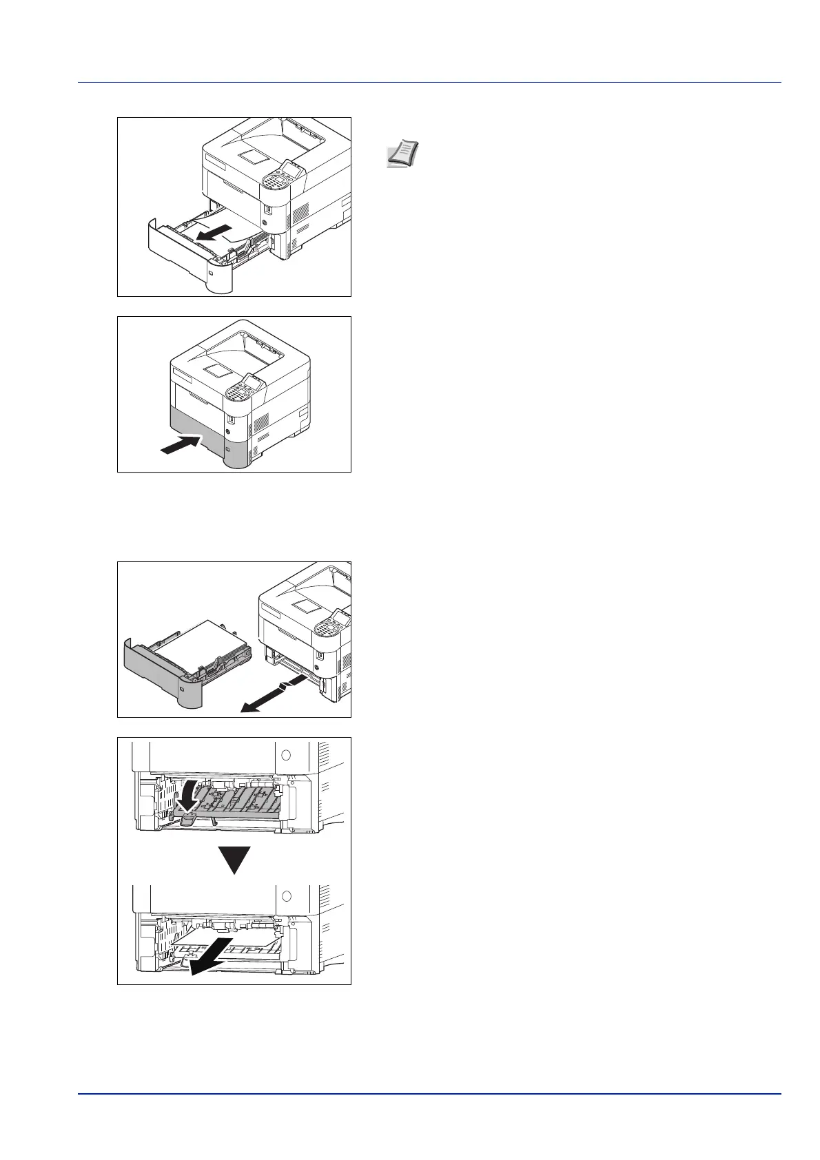 Paper is jammed in the duplex section. Remove the jammed paper using the procedure given below.
