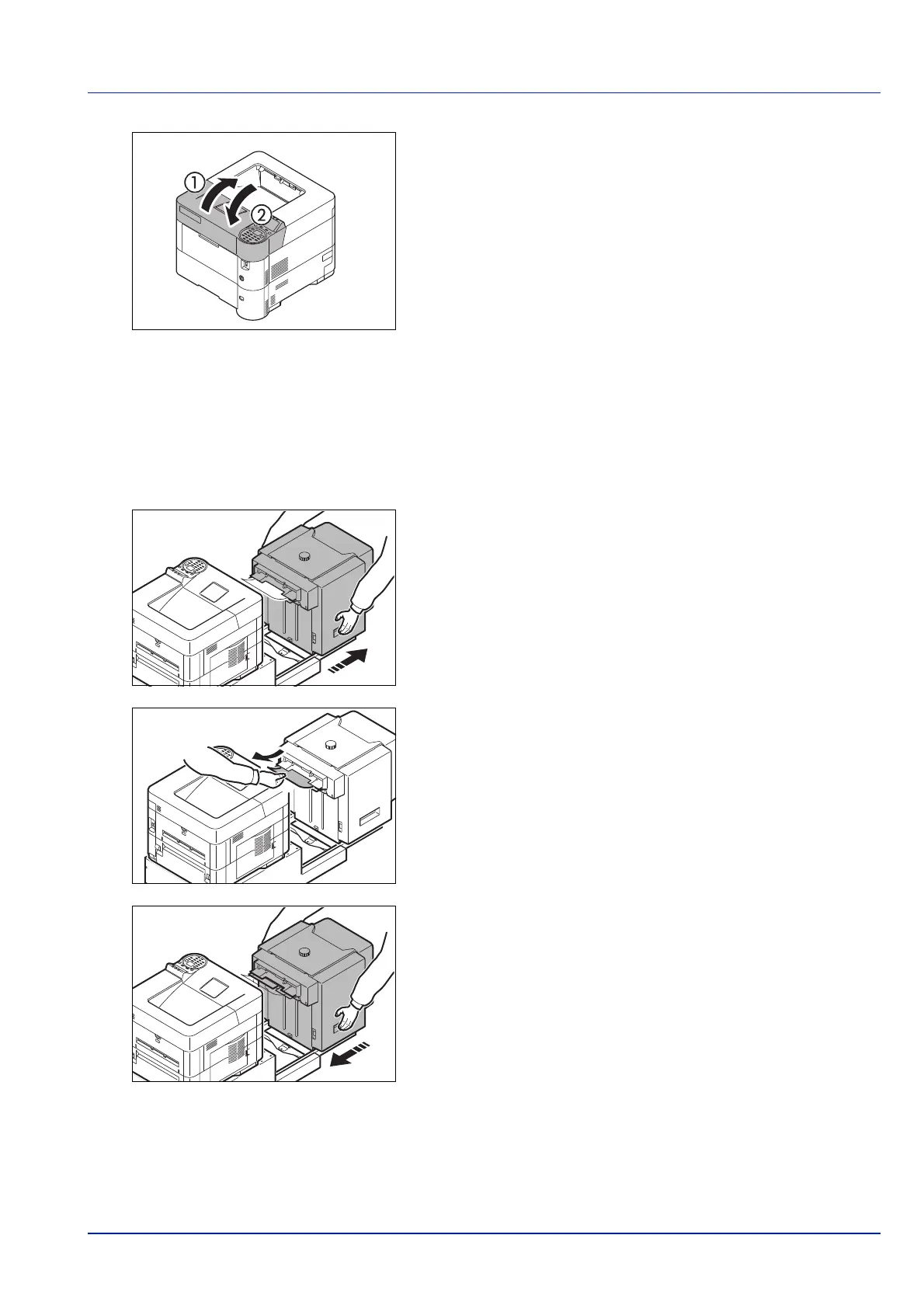 Paper is jammed at the optional bulk paper feeder. Detach the bulk paper feeder from the printer by sliding with the rail away
