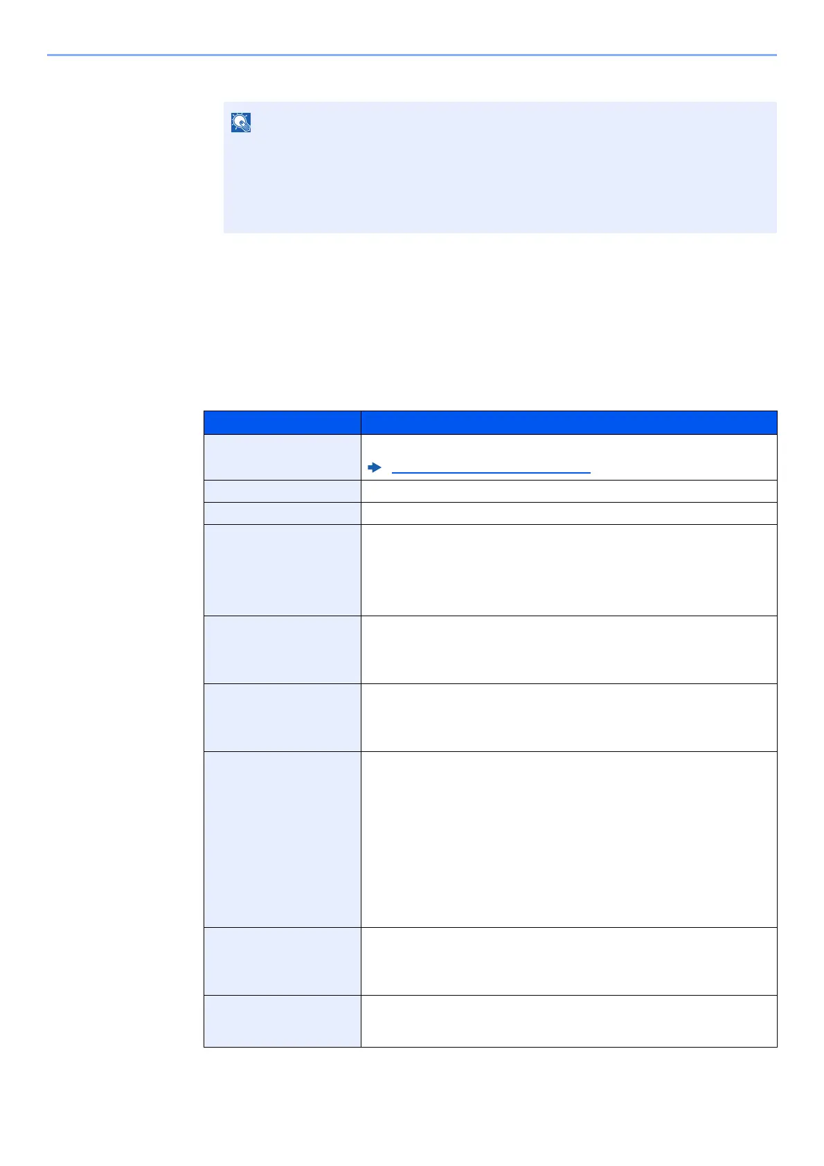 The table below lists the items to be set.